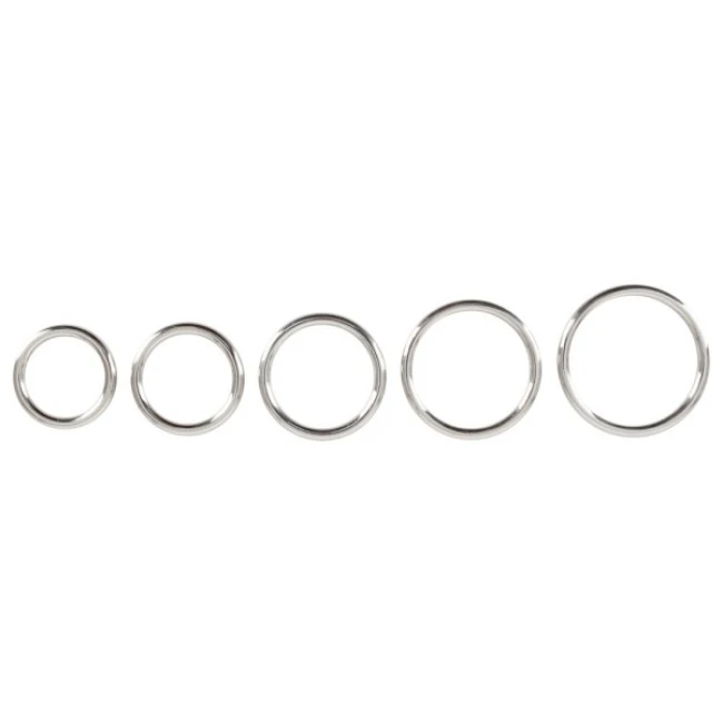 5-teiliges Penis-/Hodenring-Set Professional von Bad Kitty für eine starke männliche Performance mit aufregender Optik. Jeder der verschieden großen Ringe ist nahtlos gefertigt und glatt poliert aus robustem Carbonstahl. Können für raffinierte Temperaturfeelings erwärmt oder gekühlt werden.