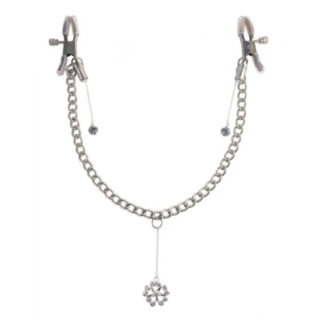 Diese Nippelklammern sind für besonders edle Fetischspielchen gemacht! Man genießt den süßen Schmerz an den Nippeln oder auch nur leichten Druck, denn die Klammern selbst sind leicht zu verstellen. Das Schmuckelement am Verbindungskettchen rundet das Design ab und lädt zu aufregenden Spielchen ein.