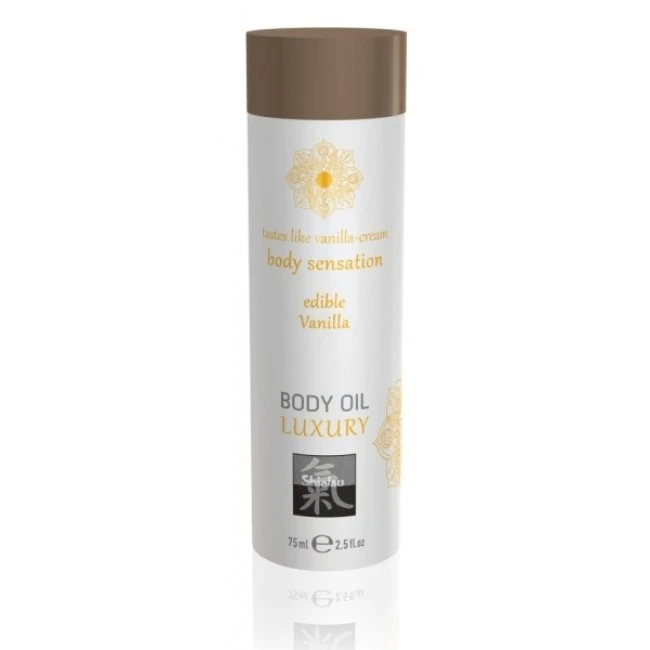 Massageöl mit erlesenem Vanille-Duft und Geschmack, der die Sinne verwöhnt und erotische Stimmungen weckt. Das Massageöl ist perfekt für orale Spiele und Erkundungen gedacht. 75 ml.