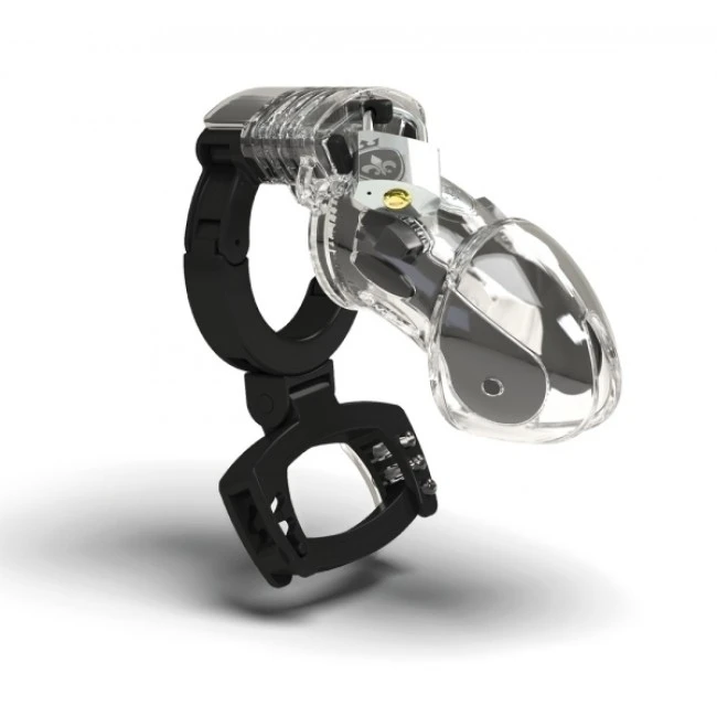 Peniskäfig mit E-Stim Funktion Pubic Enemy No 3 von Mystim. Größenvariabel. Unterdrückt Erektionen. Bietet vielfältige Elektrostimulationen. Mit 2 herausnehmbaren Leitflächen aus medizinischem Platinsilikon. Inklusive 3 Abstandshaltern, Hodenquetsche und Metallschloss mit Schlüsseln sowie 5 Kunststoffsiegeln, Elektrodenkabel und 10 Besitzschildern. Im Aufbewahrungsetui.