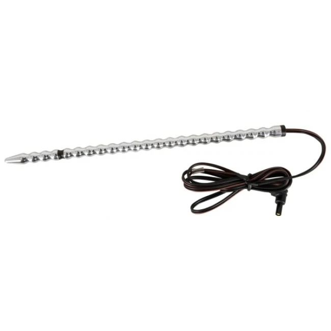 Glatt polierter Harnröhren-Stimulator. 19,5 cm lang, Ø 0,8 cm. Material: med. Aluminium. Inklusive Kabel.