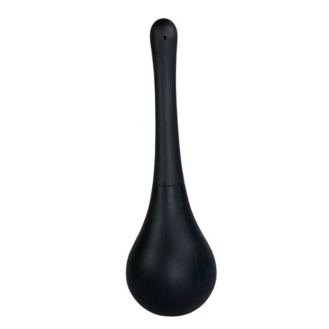 Schwarze 200-ml-Intimdusche mit drei Öffnungen und abnehmbarem, schmalem Spritzaufsatz. Einfach den Pumpball mit Wasser o.ä. befüllen, Spritzaufsatz aufstecken und erregende Spritzvergnügen genießen.
