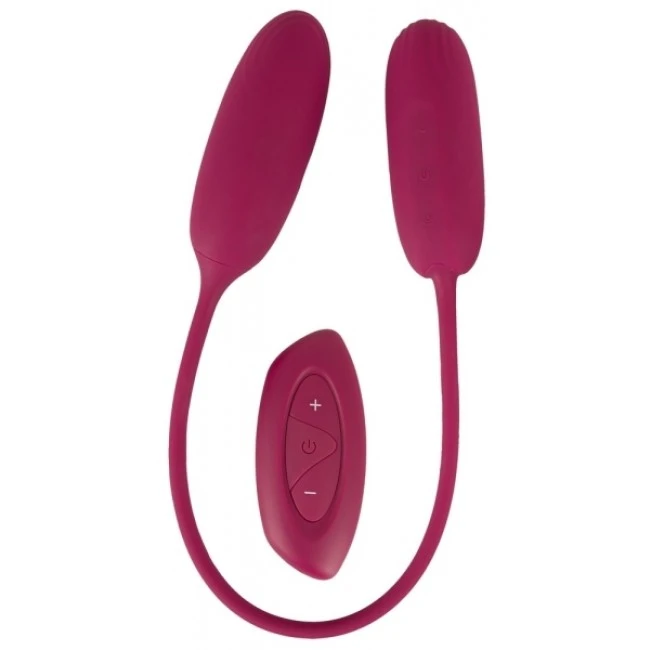 Das RC Shaking & Vibrating Love Egg Duo von Sweet Smile überrascht gleich mit 2 kraftvollen Bullets, die mit einem 31 cm langen flexiblen Silikonband miteinander verbunden sind. Das eine Bullet schüttelt und pulsiert, das andere vibriert. So ist die gleichzeitige vaginale/anale oder äußere/innere Stimulation beim Solospiel bequem möglich, sowie raffinierte Doppel-Stimulationen beim Spielen zu zweit.