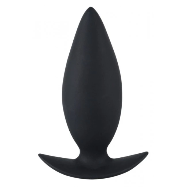 Eindringlicher Plug in schmaler Form mit abgerundetem Rückholgriff. Gesamtlänge ca. 10 cm, Einführtiefe ca. 9 cm, Ø 1 bis 2,5 cm. Schwarz. Material: Silikon.
