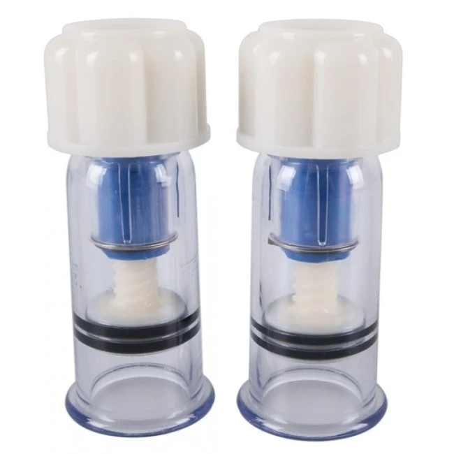 Zwei individuell einstellbare Nippelsauger, die durch Drehen ein starkes Vakuum erzeugen. Gesamtlänge jeweils ca. 10 cm und im Ø 2,8 cm. Material: ABS. 2 Stück.